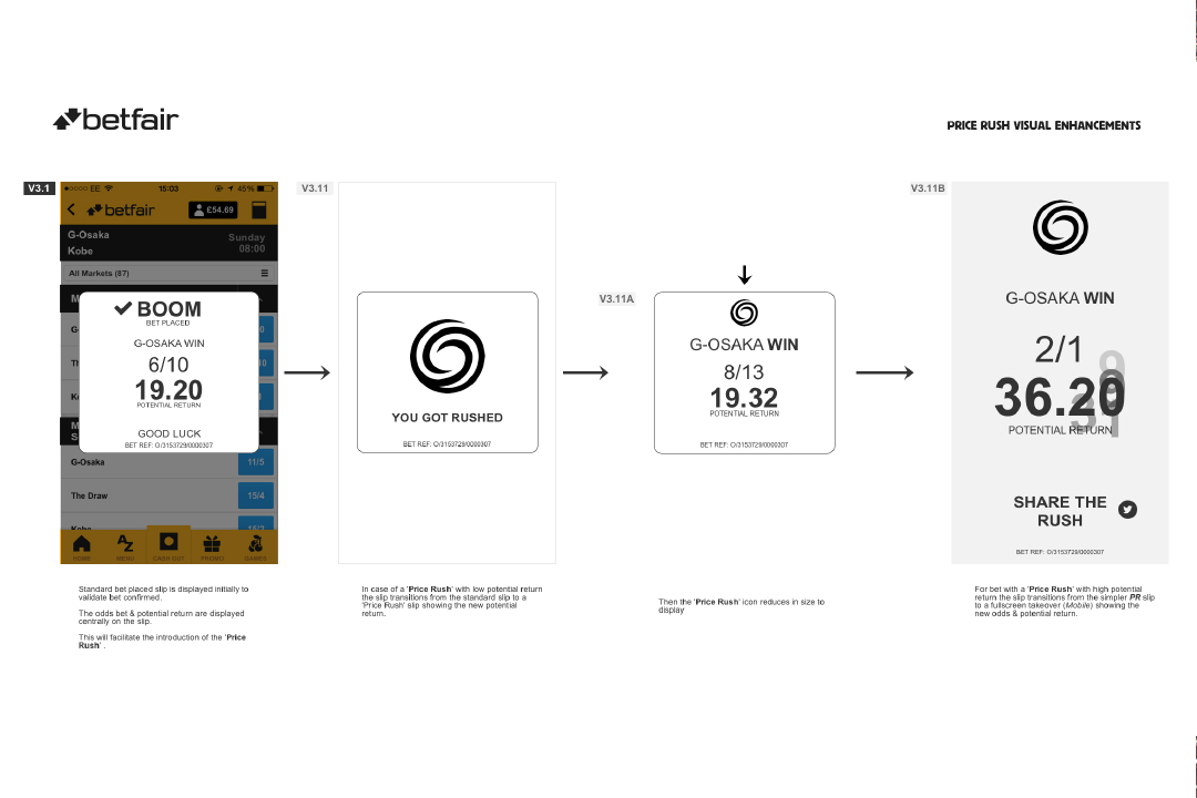 “ Exchange customers expressed a need advanced functionalities allowing them to bet in a more informed way, an enriched level of control & support for expected increased volume prior to event & InPlay betting. Live price updates, InPlay notifications and competitor analysis will be part of these advancements.” —Betfair Product Owner