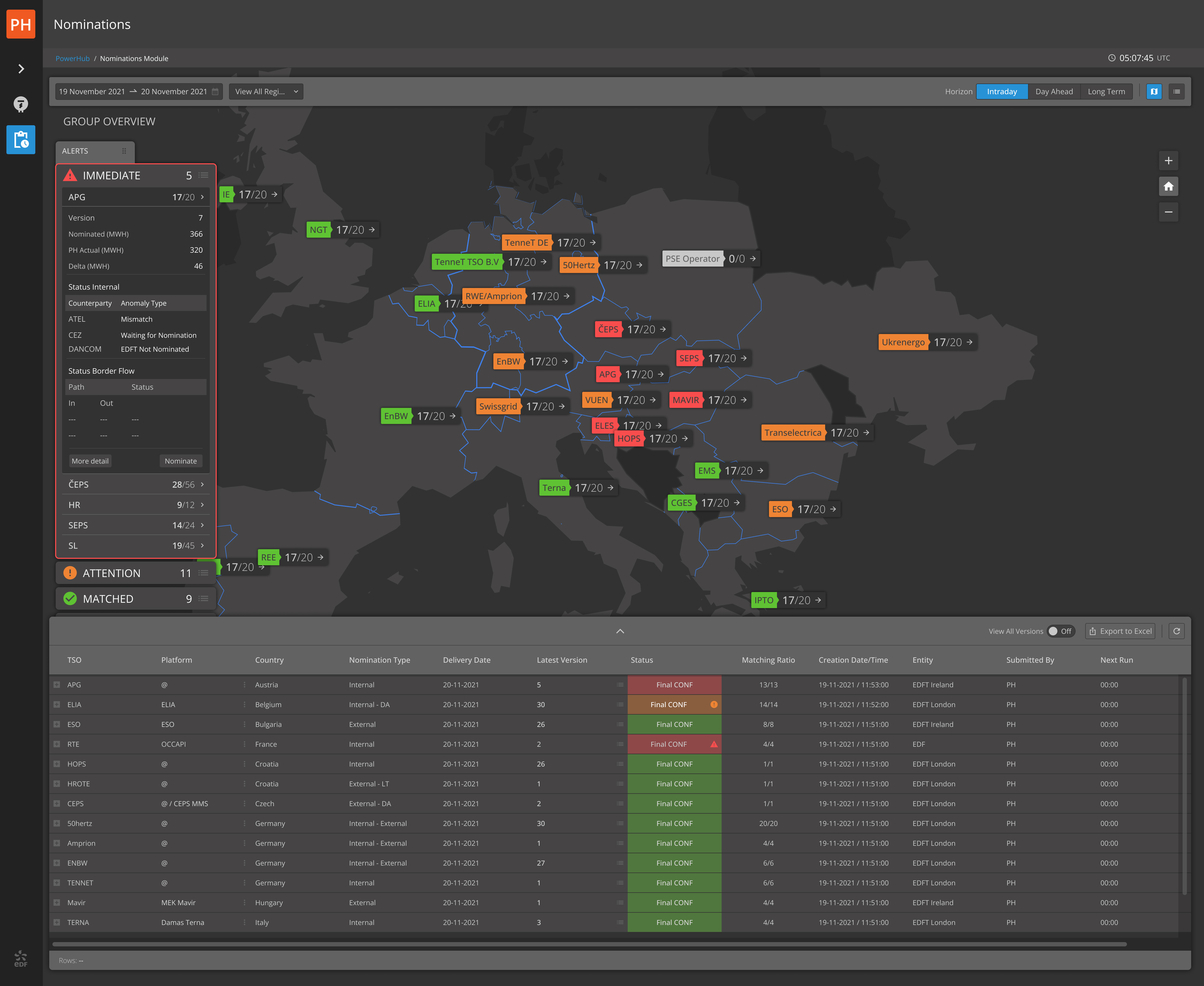 - • Direct integration with TSO and counterparty APIs automated over 75% of nominations.