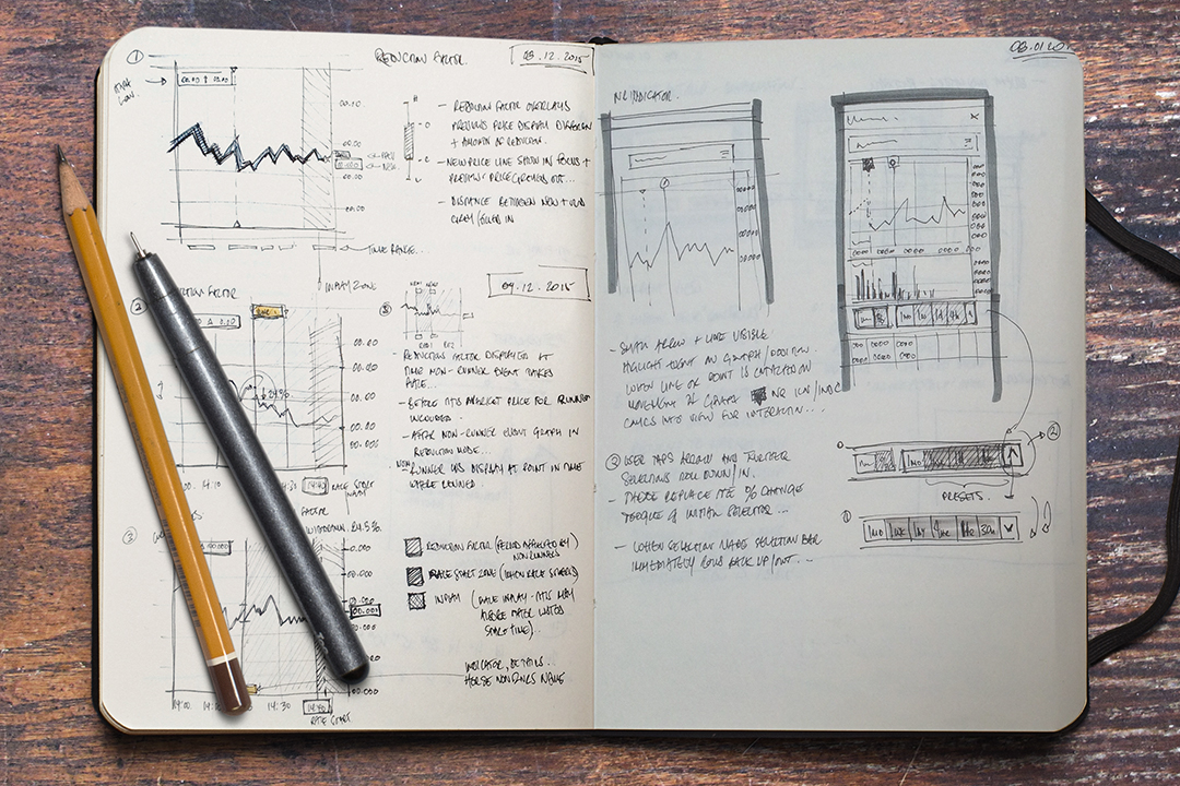 The level of fidelity referenced the iOS GUI Guidelines for scale & were only to establishing content hierarchy. The interaction revolved around the graph and the price ladder.
