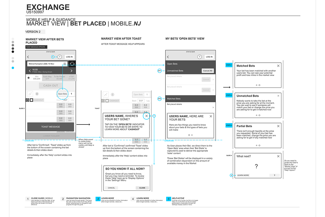 Understanding the domain and users was key. I invested time learning the Exchange betting concepts & reviewing the Exchange UX Customer documentation.